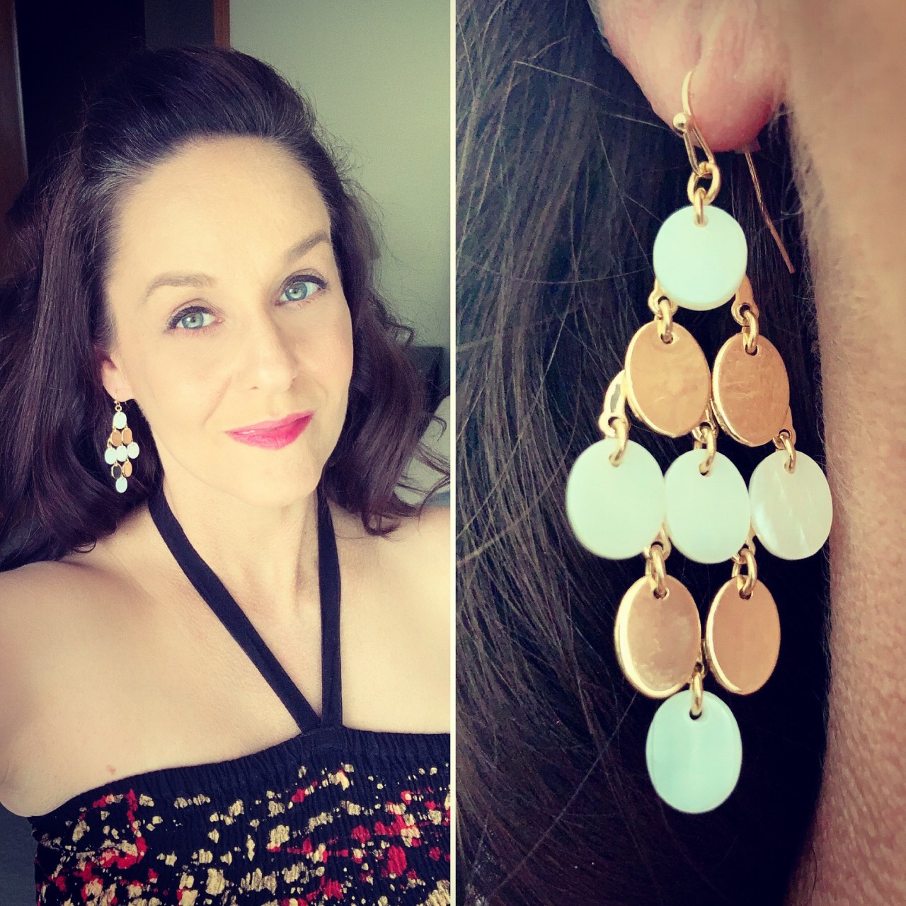 I don’t know why, but I am always a sucker for earrings that are in this style (and the phrase “shake your moneymaker” always comes to mind!) – they always look amazing and lend an air of glamour to whichever outfit you pair them with…these were no exception! They are incredibly lightweight, so they didn’t tug on my ears, nor, to my surprise and delight, did they tangle in my hair! Since they had my hair as a backdrop to lay against, I didn’t notice any tinkling…and we were up on the 15th floor outdoor balcony where it was seriously windy! I couldn’t find one single negative thing to say about these!