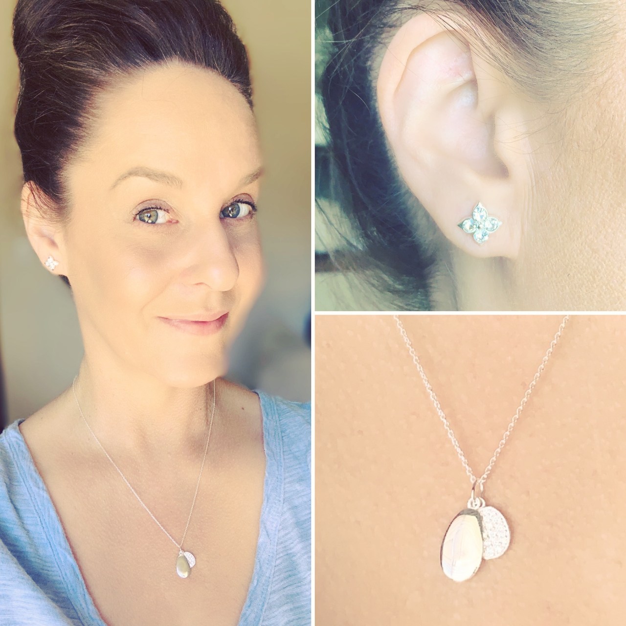 When there are multiple charms on a necklace, the smaller charm should not be behind the larger charm. What on earth were they thinking?! [insert exasperated eye roll here] That’s just a serious design flaw–and ruined this necklace completely for me. On the flip side, the earrings were a lovely surprise! I thought the earring set was pretty enough, but didn’t really expect much out of it, but the larger earrings are very nicely sized and the medium set (which I thought I’d hate due to the shape) ended up being the first ones I wore! They certainly brought the sparkle the necklace lacked, but weren’t so sparkly that they looked mismatched with a casual tee.
